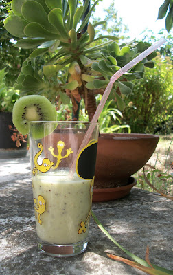 Eh...the heat! Today is my birthday! wishes to me! I really wanted a drinking yougurt fresh and light, when i was a child every so often i drank this beverage and were so good! So just now i have prepared one, having no other i used kiwi fruit but you can change and mix yogurt with the fruit you like most. Simple and fast, in a flash is ready!
